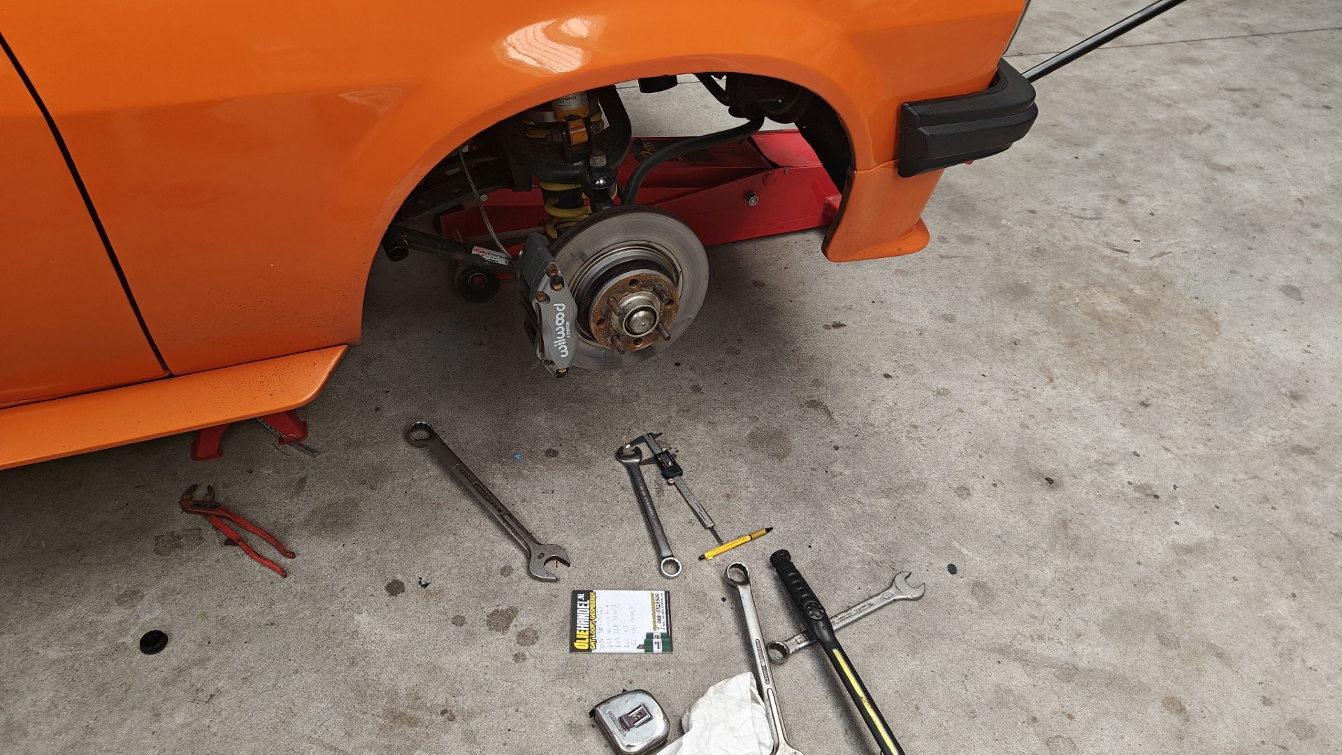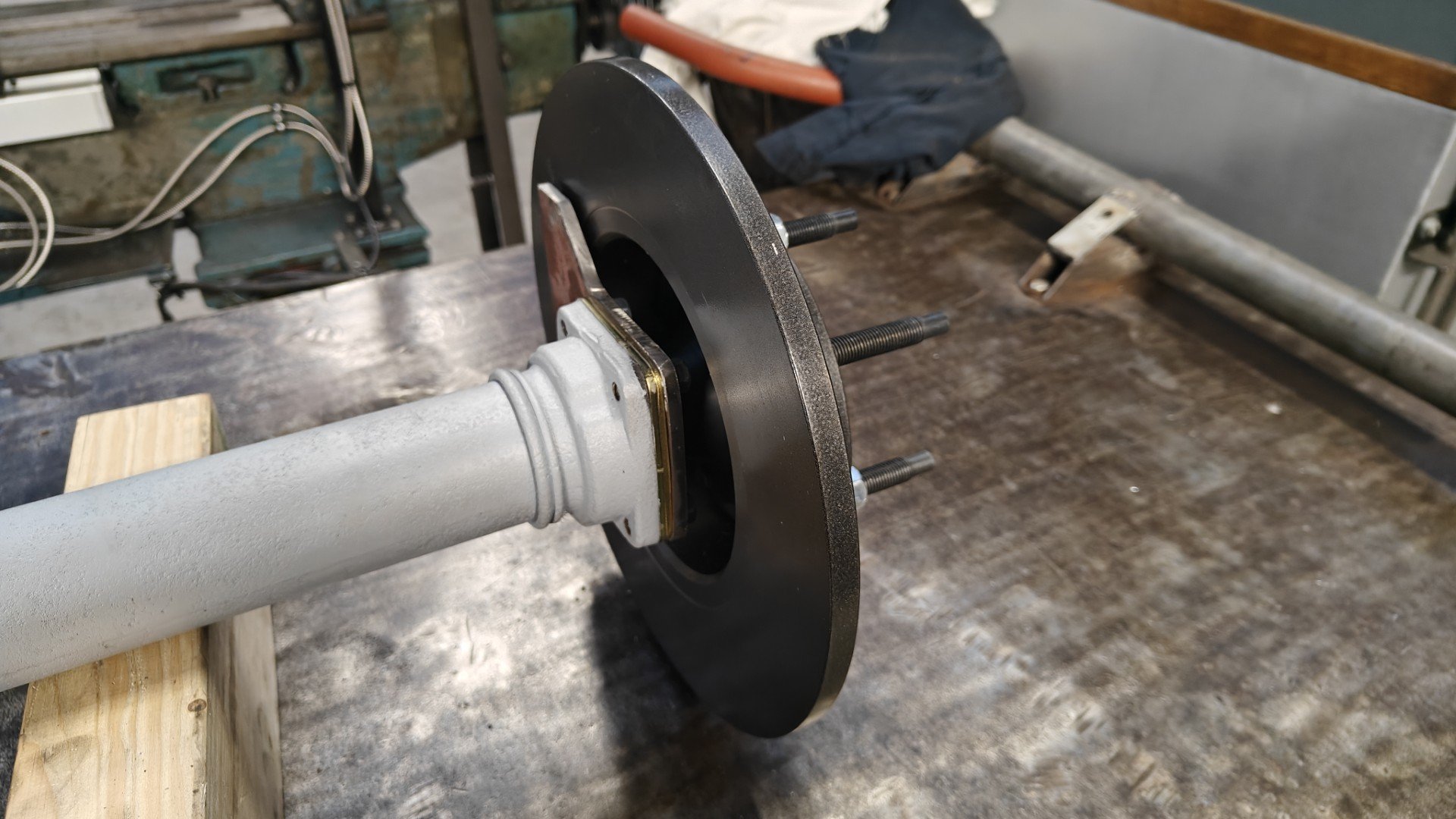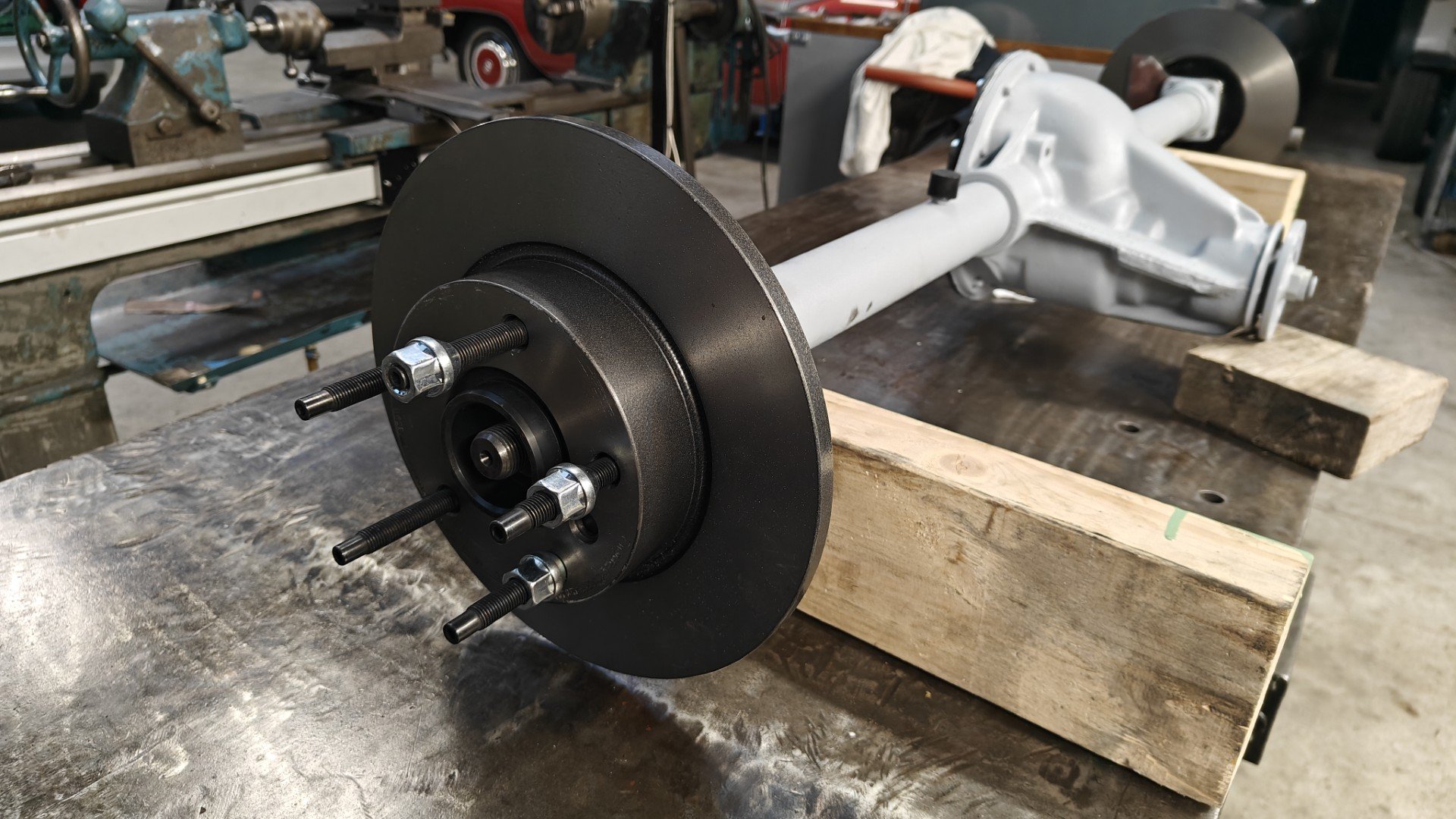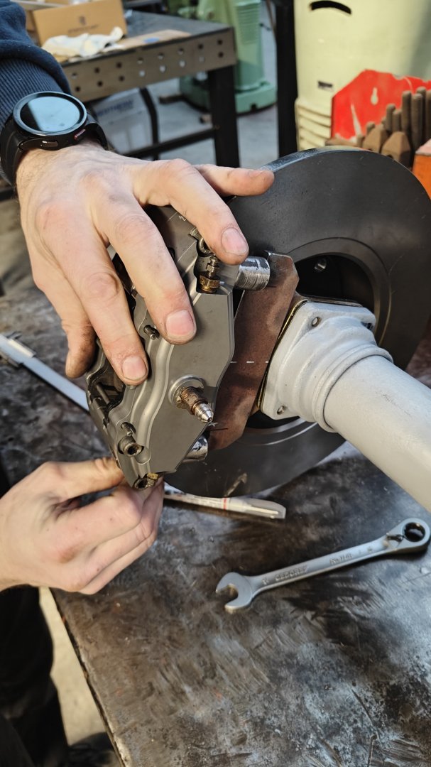 We zijn begonnen aan de achteras, daar hebben we schijven voor besteld en de rembrackets gemaakt. Verder heb ik de vooras afgesteld zodat ik eventueel 18" velgen kwijt kan, hiervoor moesten beide wielen iets meer naar achter omdat ze met insturen de voorspoiler raakten. Dit heb ik getest met de achterwielen waar op dit moment hogere banden op zitten om te passen. Ik ben nog aan het nadenken of ik nu 18" velgen eronder ga nemen of bij 17" blijf. en dan deze iets hogere band hou.