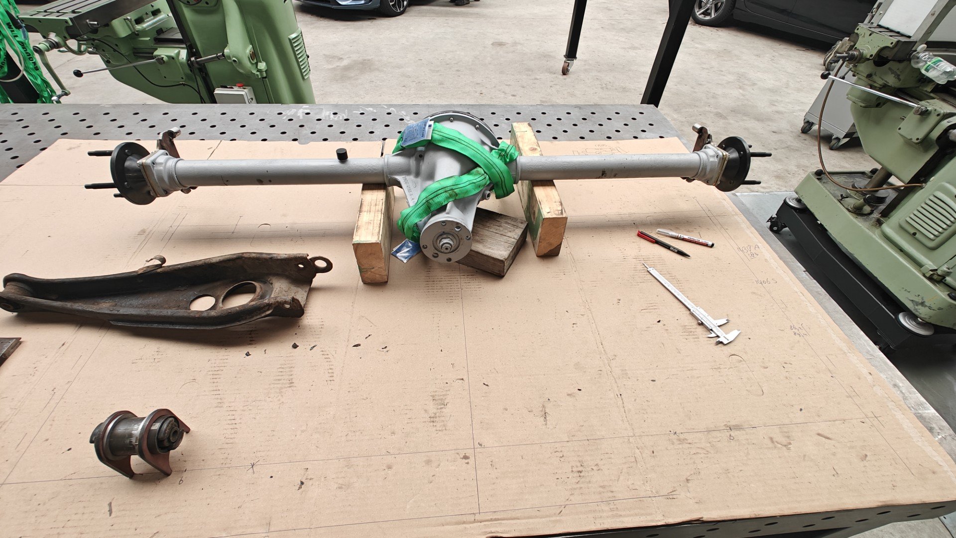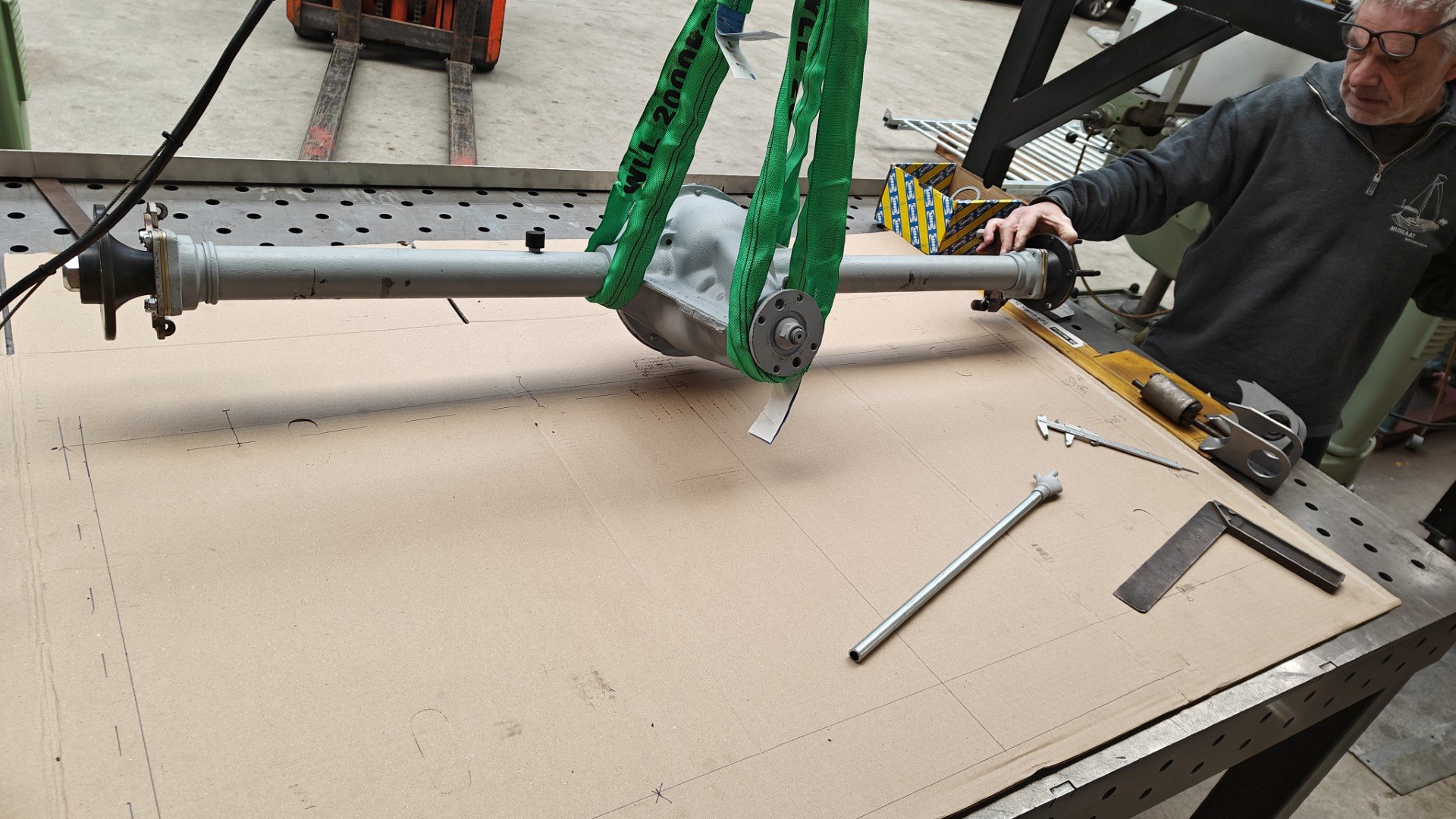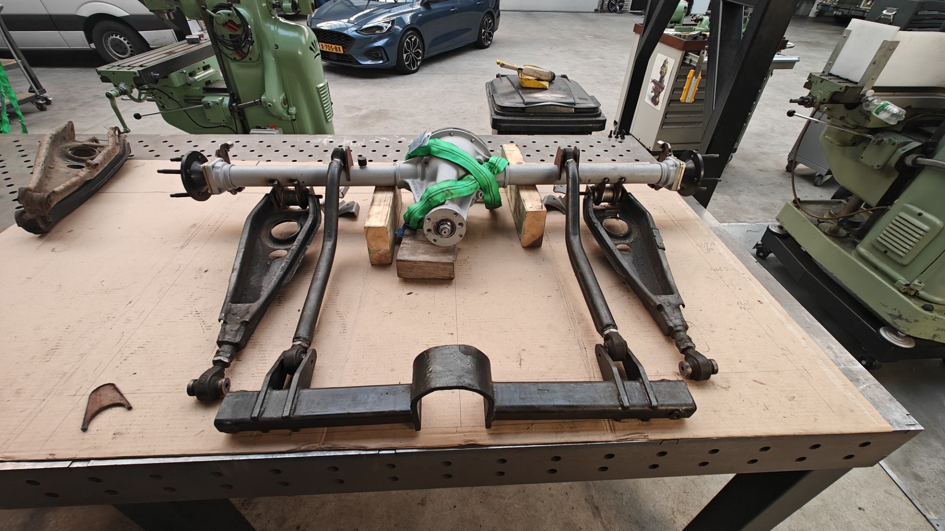 We zijn druk met de nieuwe achteras bezig. Nieuwe rembrackets, nieuwe bevestigingspunten enz.