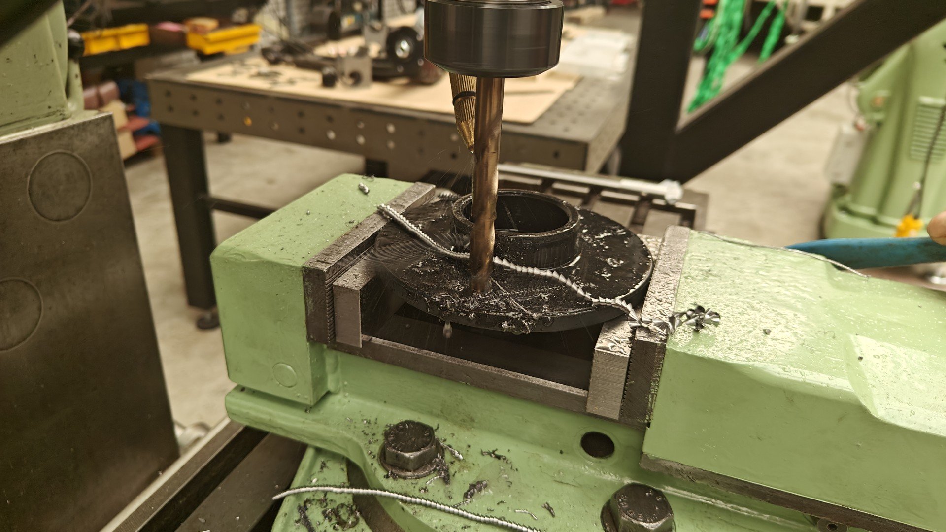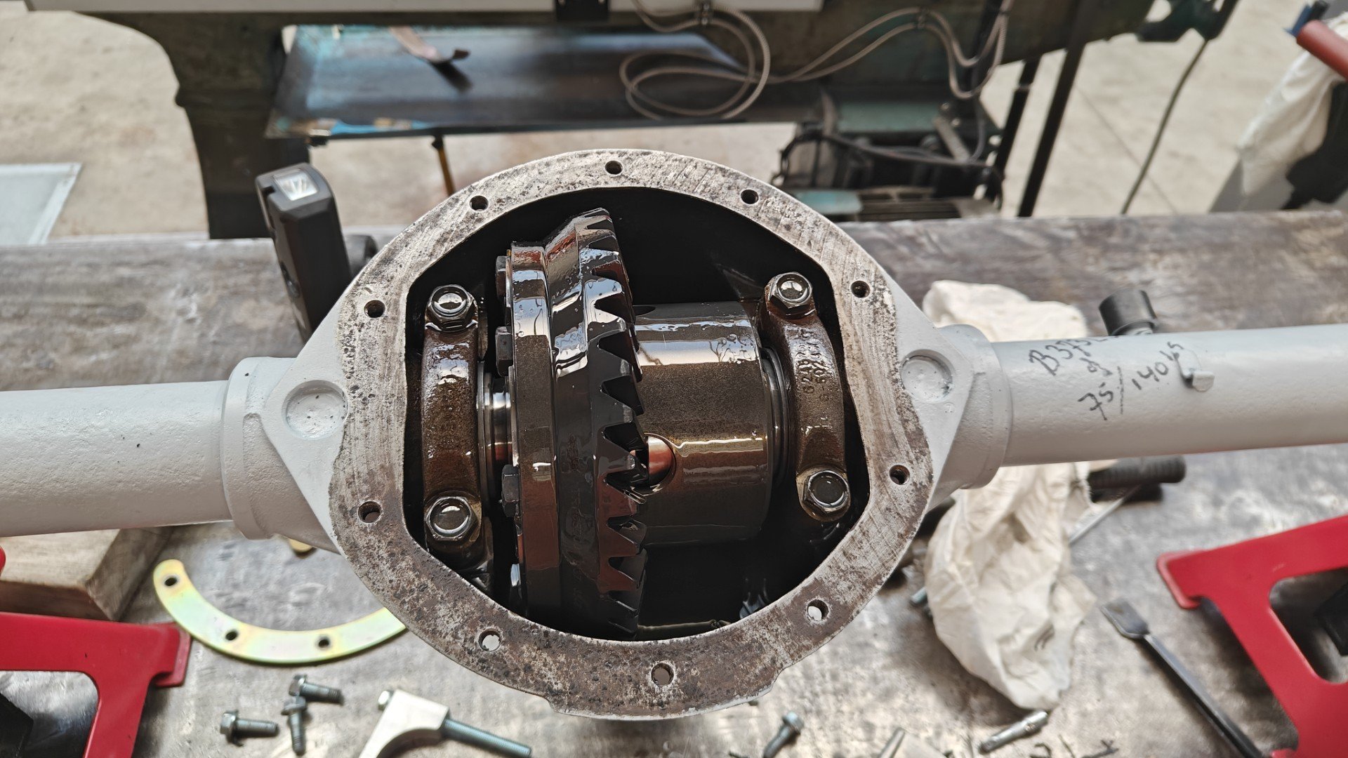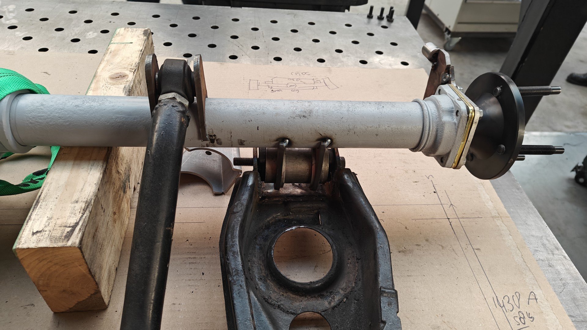 We zijn druk met de nieuwe achteras bezig. Nieuwe rembrackets, nieuwe bevestigingspunten enz.